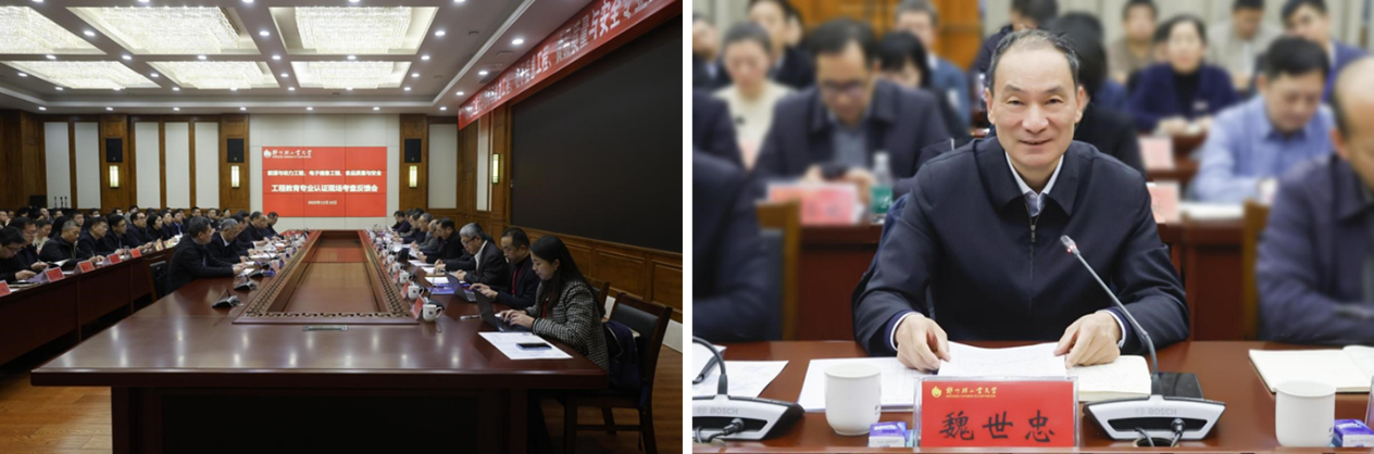 校长魏世忠作表态发言,衷心感谢专家辛勤付出与诚恳指导,指出专家意见客观中肯、极具指导意义。学校将以此次考查为契机,锚定“学生中心、产出导向、持续改进”理念,深化工程教育改革,完善质量保障机制,以认证促改革、提质量、塑品牌,全力建设高水平轻工业大学,为中国式现代化贡献力量。